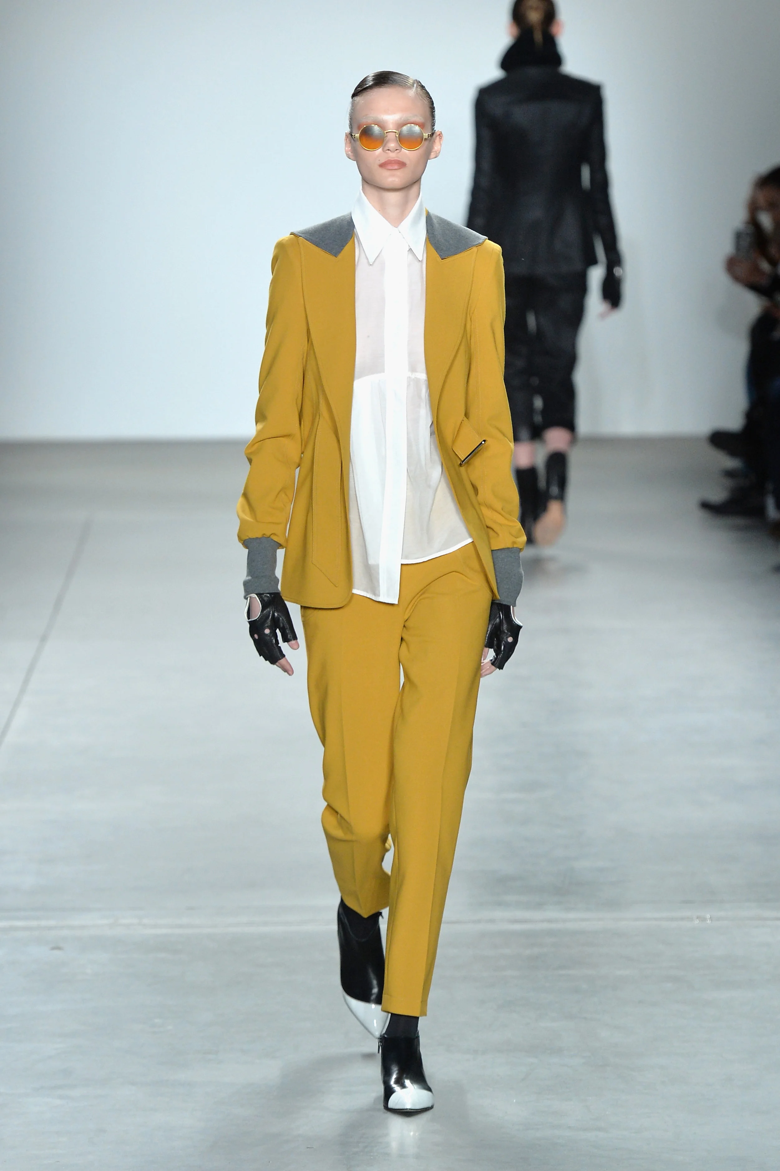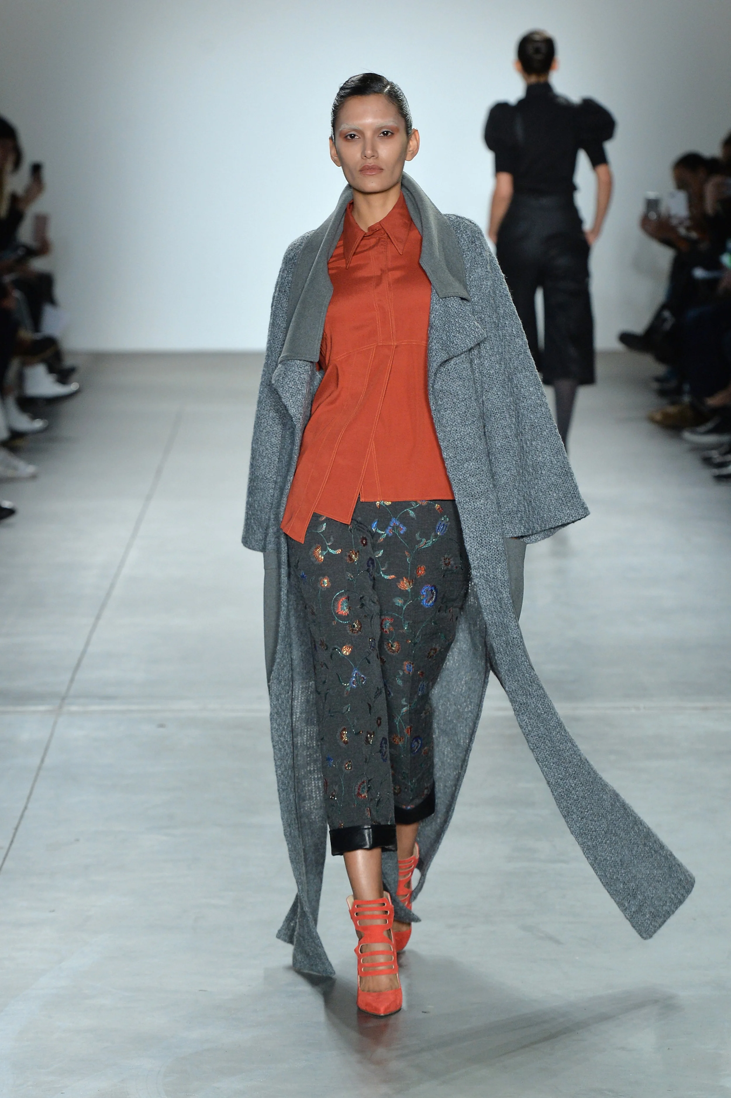 Hair by Allen Ruis was neatly stacked into glossy headband braids - a traditional Japanese topknot haircut. It is most commonly associated with the Edo period and samurai, and in recent times with sumo wrestlers. Makeup was done by Anna Conte and styling by Marissa Weingarten and Nancy Edwards.