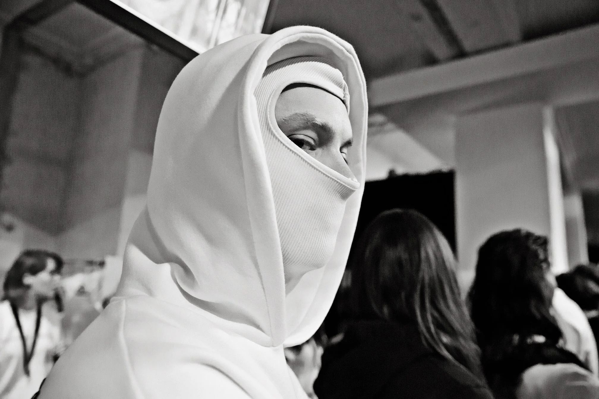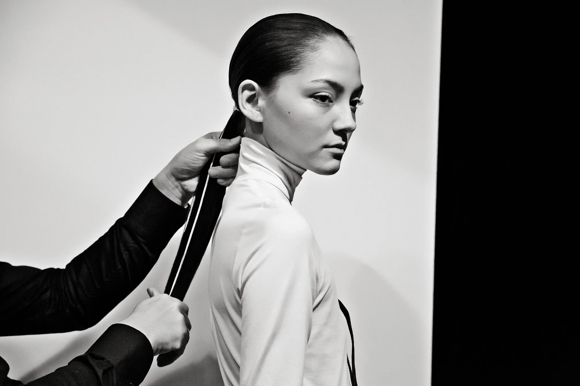 By reducing it to black and white it becomes a bit more reportage about the people and what’s going on backstage than about the fashion.