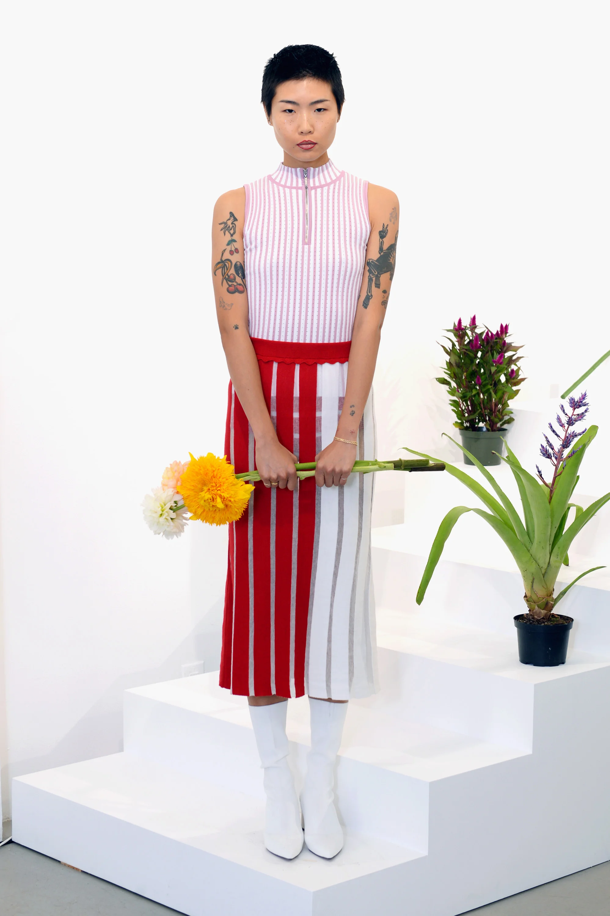 For PH5, contemporary art is a constant touchstone, every season they choose inspiration from a different artist. Last season, the brand made its Fashion Week debut with striped jumpsuits and T-shirt dresses inspired by Carlos Cruz-Diez, and Fall Winter 17 took its cues from Martin Creed. This season the Spring/Summer 18 collection “In Search of Beauty in an Artificial Landscape" gathered inspiration from British artist Marc Quinn. Quinn’s idea of artificial flowers is to bring the human idea that it does not necessarily mean fake or man-made flowers, but the way flowers are desired to be, the celebration of diversity.