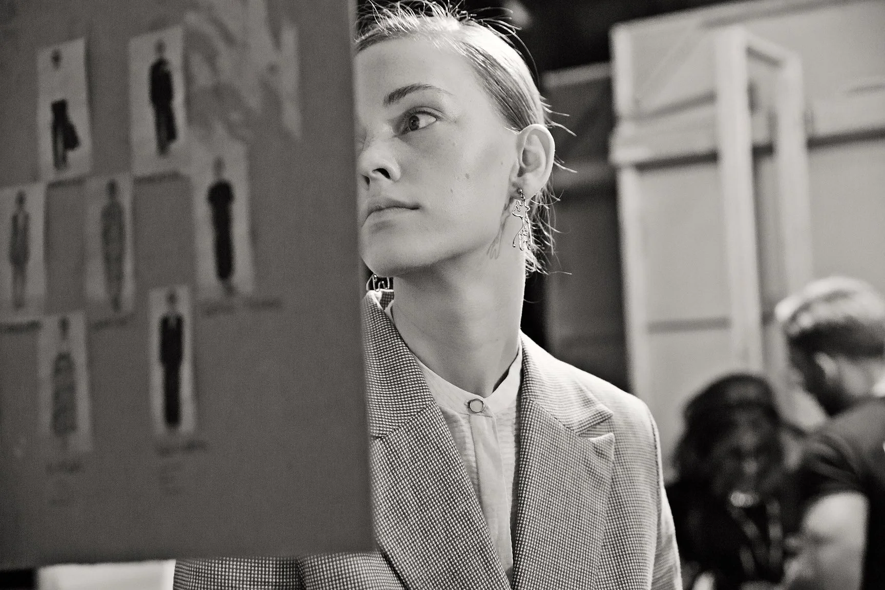 A household brand established in 2010. Malaikaraiss refines tailoring on feminine classics with a casual twist that composes a soft and elegant silhouette for their latest collection. Their distinctive detailing plays on a blend of contrast. For Berlin Fashion Week, we travel behind the scenes with the Berlin-based label, to view a firsthand portrait of Malaikaraiss team preparing for the spring-summer presentation. Photographer Heiko Lachitzki captures the intensity of backstage in a poetic short story.