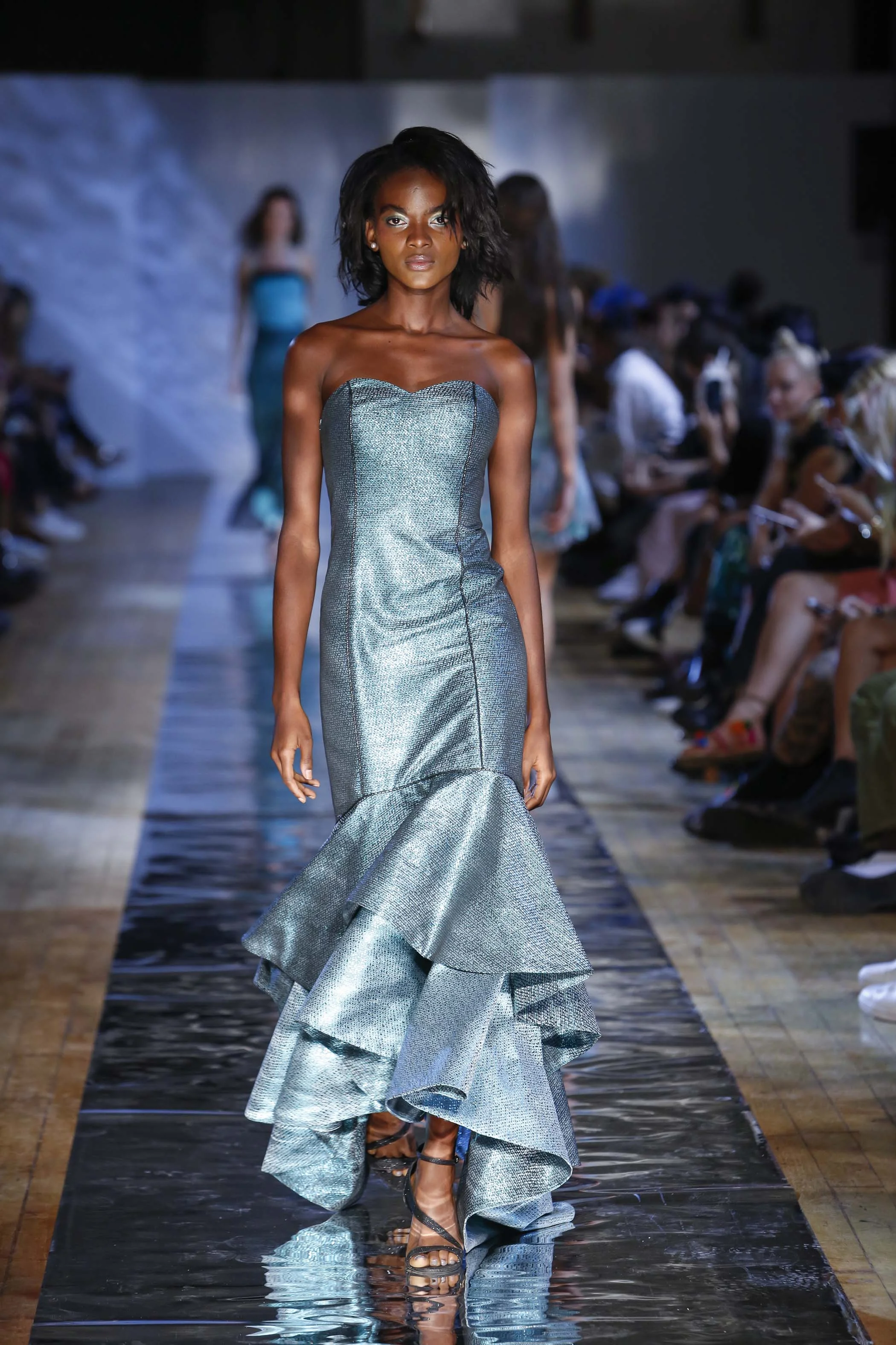 Believing fashion is a form of expressive art for the body, while finding most pride in distancing her aesthetic from the typical norms. Ane Amour spring-summer 17 collection gathers inspiration from the designer’s travels, viewing different environments and finding an emotional connection with the ocean. Entitled “Siren’s Song”, the collection celebrates the beauty of color, sound and the sea’s ambience. Reminiscent of the ocean waves, Ane reflected this notion by articulating the unique sounds during the show and through the dramatic silhouettes of the collection, while remaining true to the brand’s perspective. Before the show we had a moment to discuss with Iyala Ane about the concept of her first collection and the visual behind the woman wearing her garments.