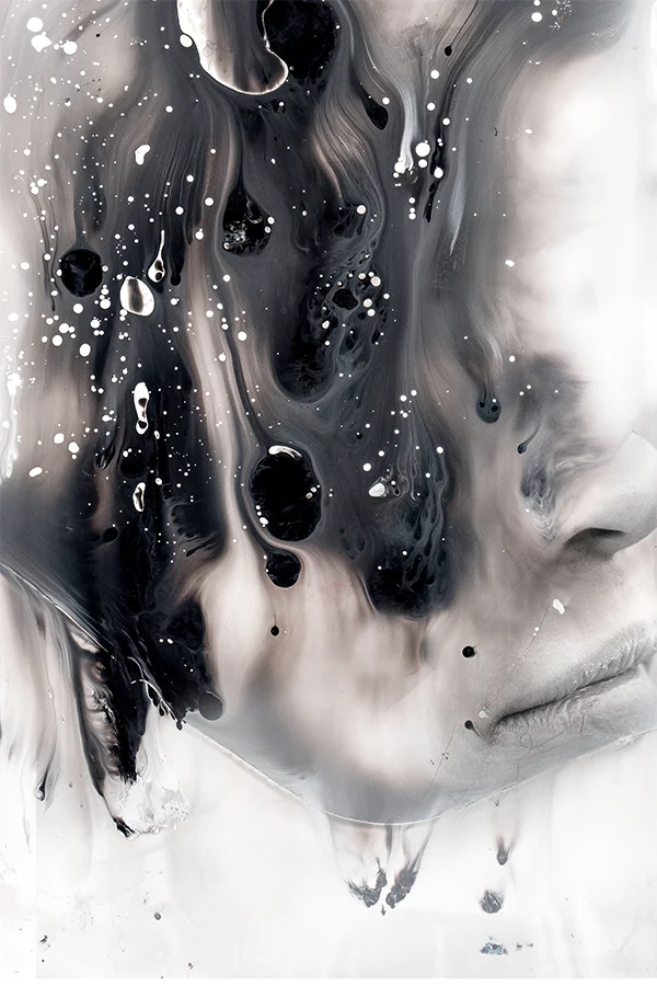 Startled in my search I was enthralled by the magnitude of Philippines based artist Januz Miralles. A young artist who manipulates photos, ravaged with marbled delights of watercolor seemingly liquefied on canvas. Highlighting characters that mostly resemble women lost in their thoughts. My initial reaction questioned the person in the image, wondering, who is this person? And what are the emotions she’s feeling? Is a complicit moment of ecstasy or the serenity of her thoughts? Though most of the faces of the characters are abstractly disfigured in a surreal state, the artist reveals the beauty of femininity and the delicateness of the female form, through his selection of colors, strokes, placement and texture.